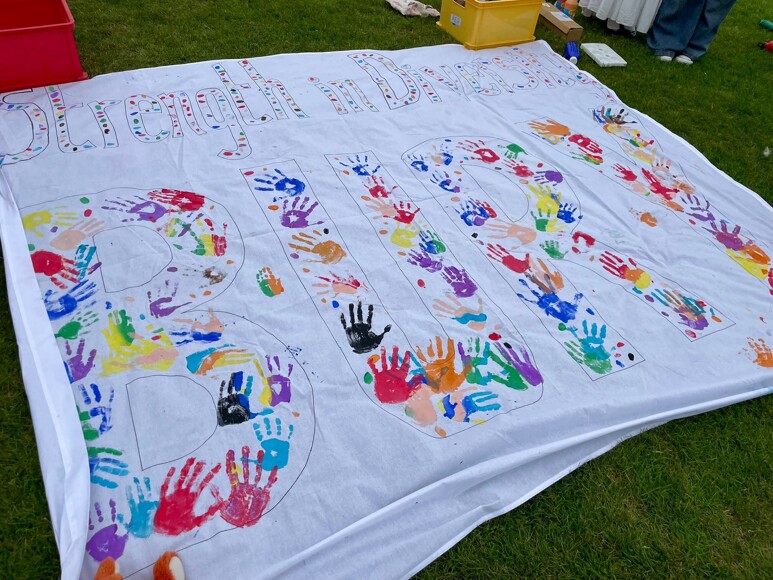 They also helped to create a huge display of painted hand and thumb prints to spell out the tag line of the event, Strength in Diversity.