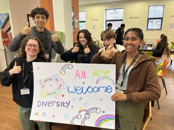Staff are supported in their work on Diversity, Equity and Inclusion through the DEI Staff Ambassadors which is a group of staff that have volunteered to champion the 9 protected characteristics from the Equality Act (2010). Our commitment to inclusion is especially demonstrated by our choice to include a further staff ambassador for socio-economic disadvantage. The Ambassadors meet with the wider DEI group three times a year and aim to empower the staff to raise awareness of equality, to celebrate diversity and to encourage inclusion through various events in the college calendar and a focus month for each characteristic. Inspired by our seven college values – joy, compassion, service, humility, daring, vision and faith – there is a vibrant calendar of events that celebrate equality, diversity and inclusion such as One World Week, Black History Month, International Women’s Day, Interfaith Week and Pride. The College motto, ‘Think Well, Feel Well and Do Well’, derives from the words of Pope Francis and reaffirms the aim to provide holistic education where every aspect of the individual is nurtured and encouraged to thrive. These principles are central to the life of the College-we aim to live and breathe the values we espouse.